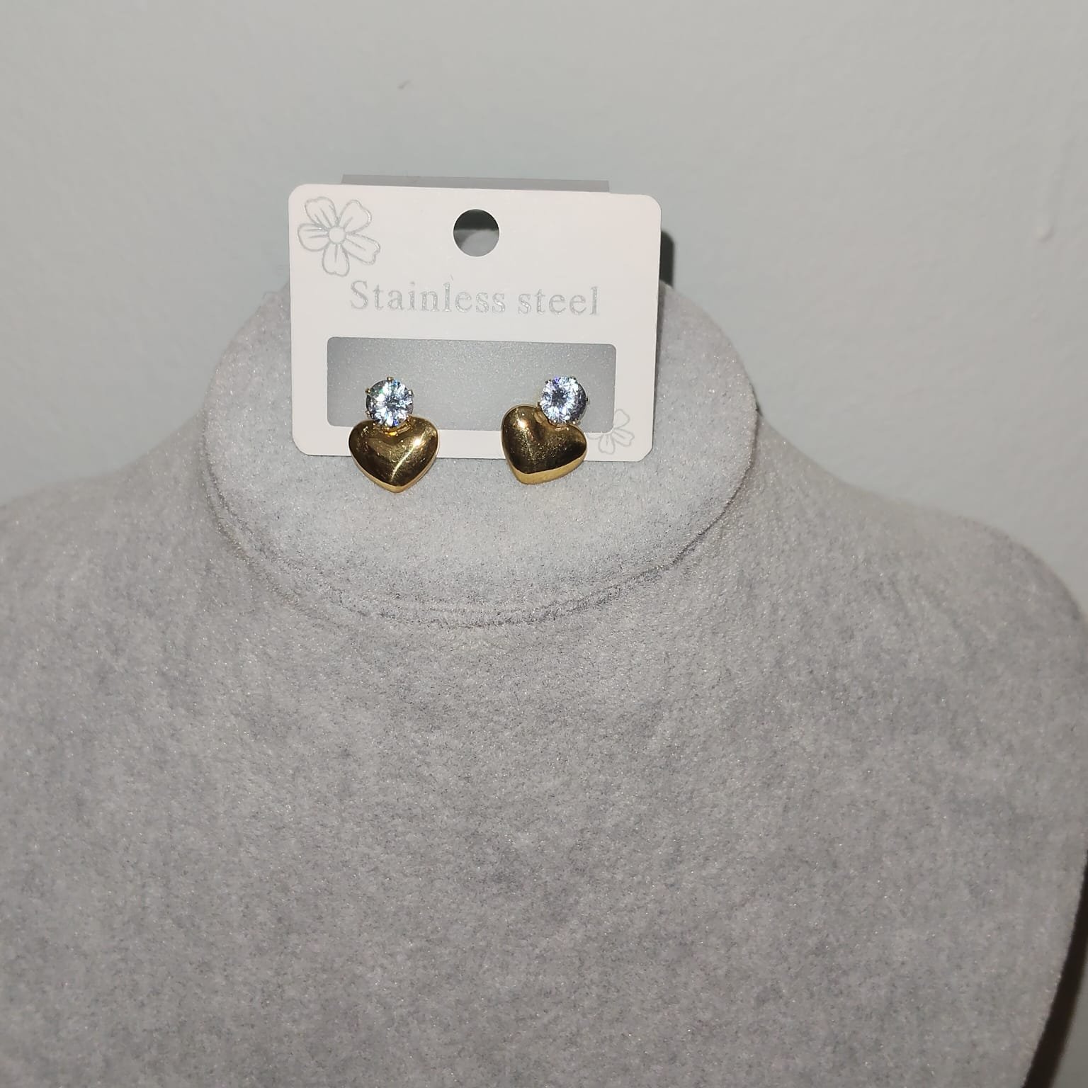 Ατσάλινα σκουλαρίκια με ζιργκονάκι σχήμα καρδιάς