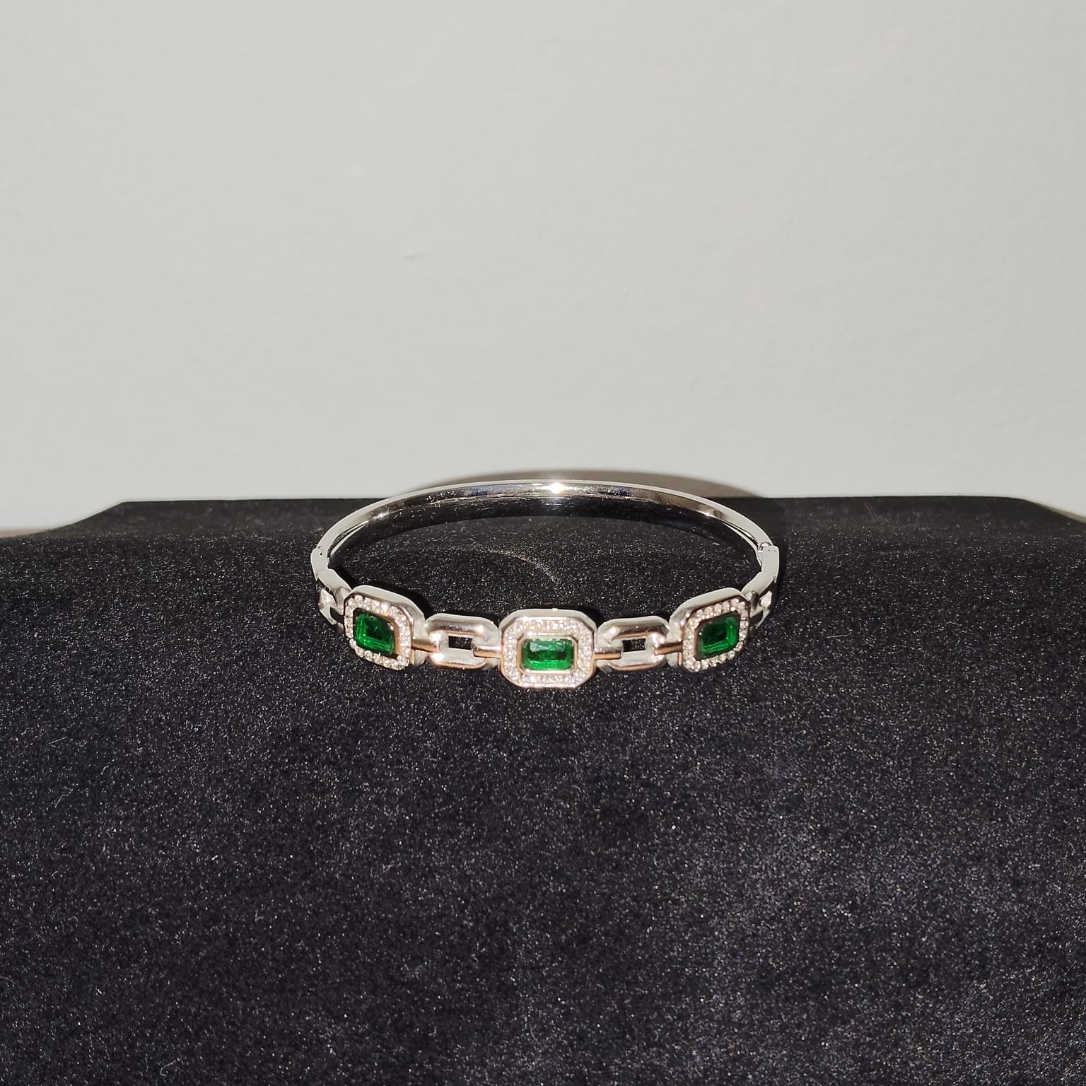 Ατσάλινο βραχιόλι με πράσινη πέτρα ζιργκόν σε ασημί και χρυσό χρώμα ποσότητα