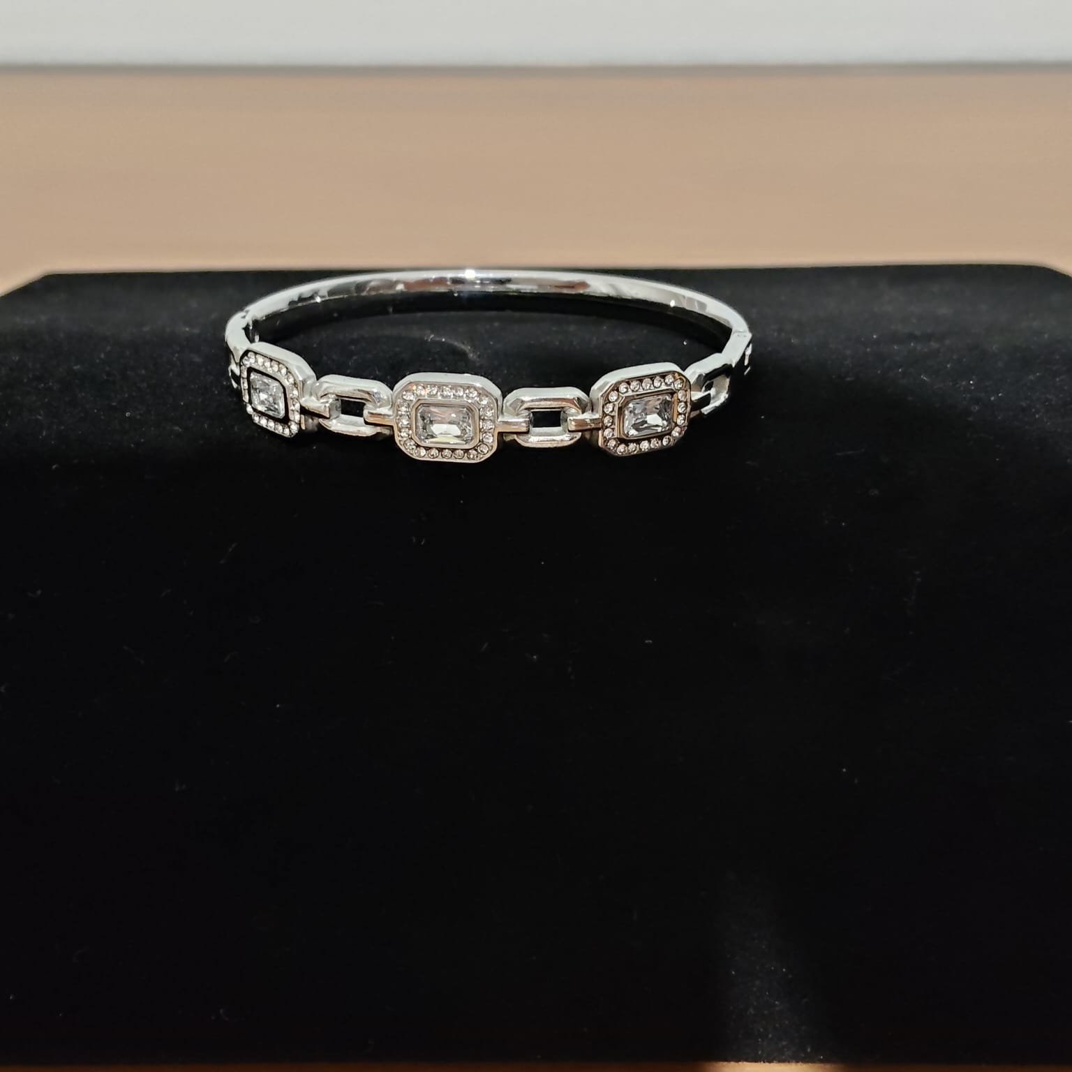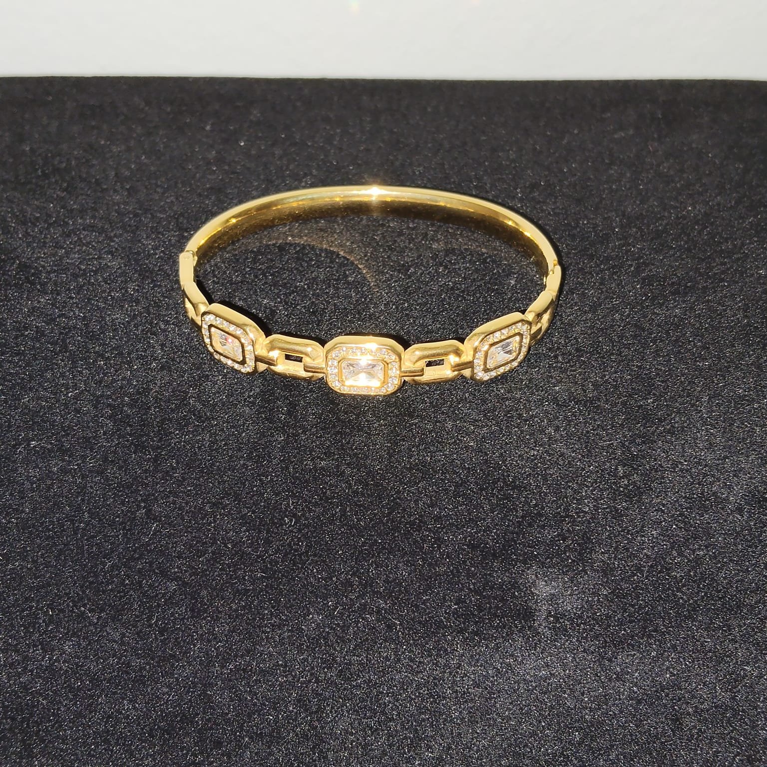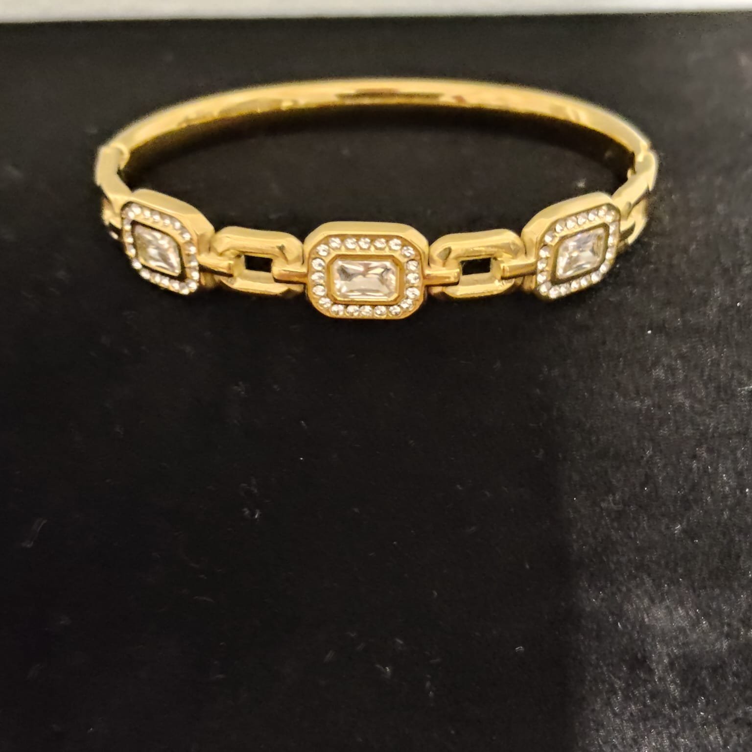 Ατσάλινο βραχιόλι σε χρυσό και ασημί χρώμα με λευκές πέτρες ζιργκόν