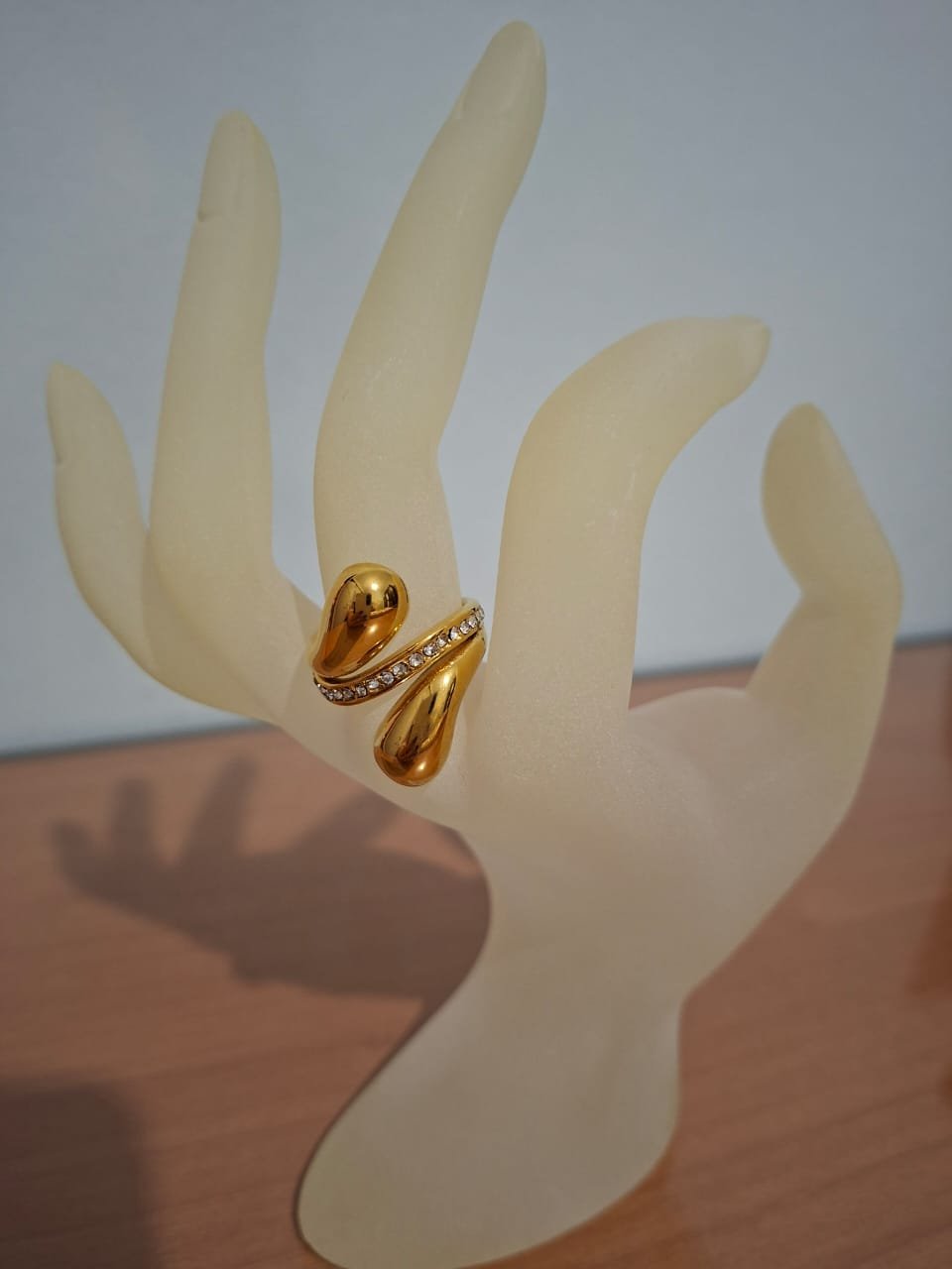 Δαχτυλίδι σε χρυσό και ασημί χρώμα με ζιργκονάκια σε σχέδιο δάκρυ ποσότητα