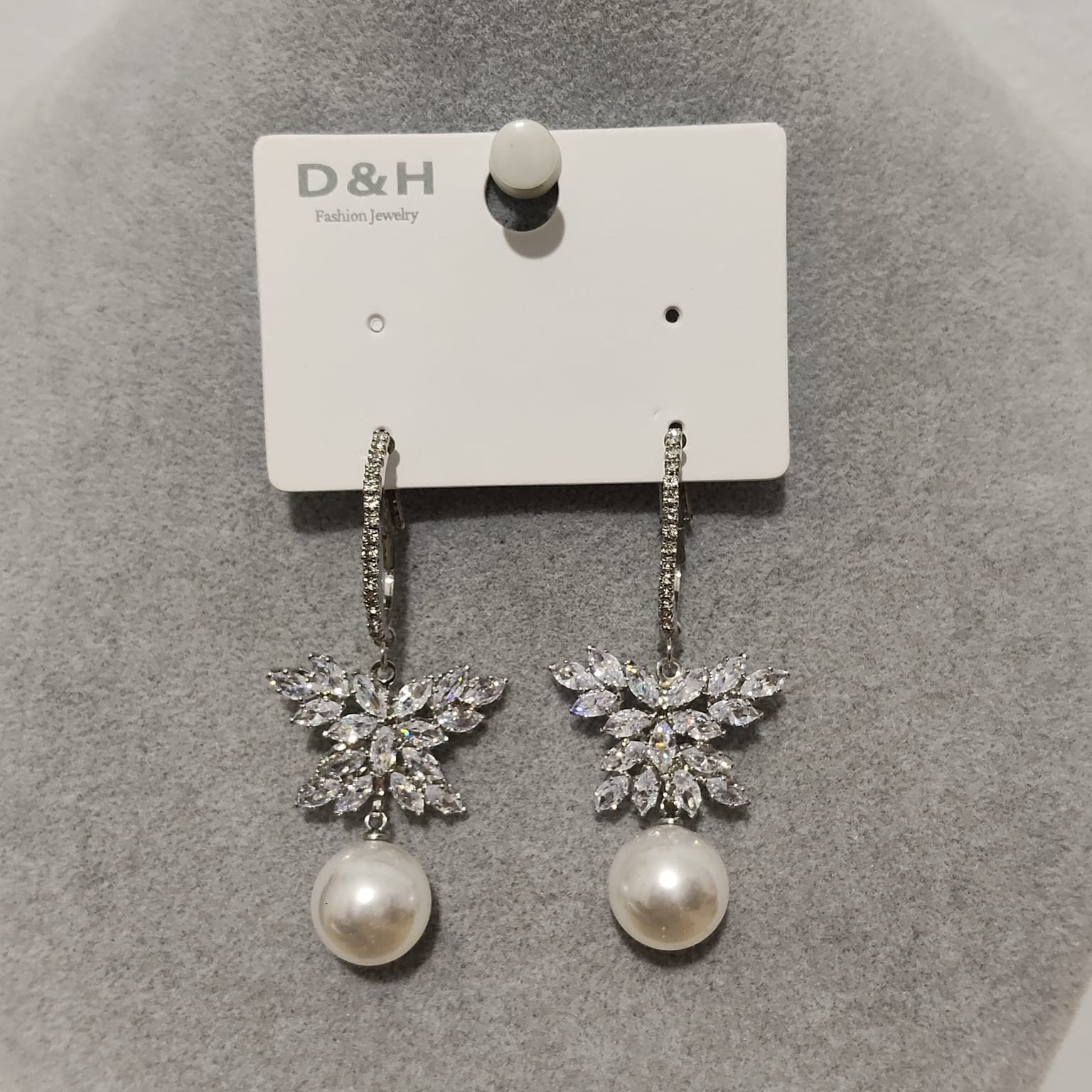 Σκουλαρίκια αστέρι με μεγάλη πέρλα και ζιργκονάκια ποσότητα