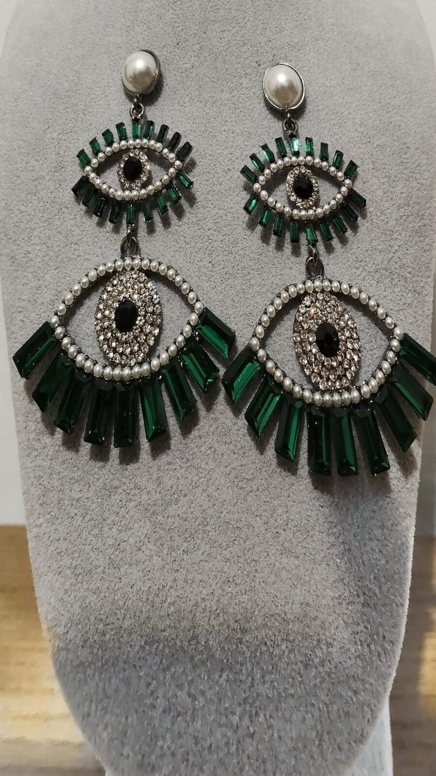 Σκουλαρίκια με πράσινες πέτρες τύπου μάτι ποσότητα