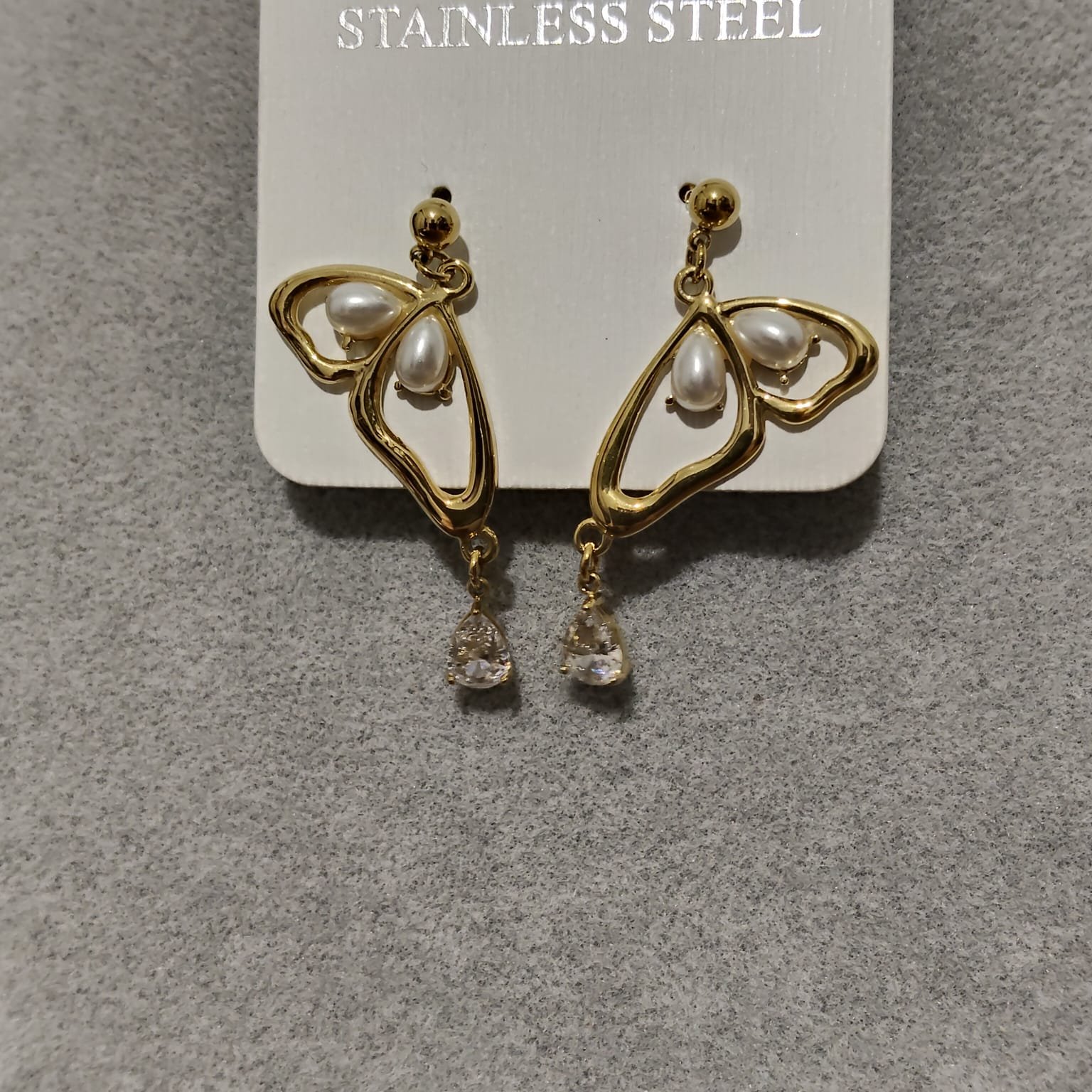 Σκουλαρίκια πεταλούδα με πέρλες και ζιργκόν